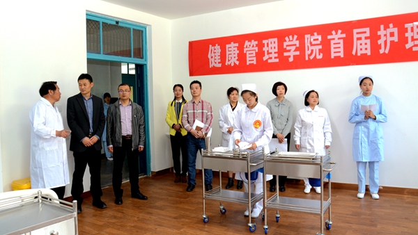 為紀(jì)念和慶?!?.12”國際護(hù)士節(jié),弘揚(yáng)南丁格爾精神,鞏固我校護(hù)理專業(yè)實(shí)踐操作技能,5月9日,我校健康管理學(xué)院舉辦首屆護(hù)理技能操作大賽。副校長劉勇出席大賽,教務(wù)處相關(guān)負(fù)責(zé)人、健康管理學(xué)院院長、護(hù)理專業(yè)全體教師參加了大賽。大賽還特邀商洛市中心醫(yī)院和商洛市中醫(yī)醫(yī)院3名主管護(hù)師擔(dān)任評(píng)委。