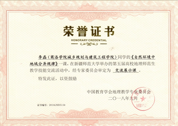 9月28—30日,由中國(guó)教育學(xué)會(huì)地理教學(xué)專業(yè)委員會(huì)主辦,新疆師范大學(xué)地理科學(xué)與旅游學(xué)院、華東師范大學(xué)地理科學(xué)學(xué)院聯(lián)合承辦的“2018年地理師范生教學(xué)技能大賽”在新疆維吾爾自治區(qū)烏魯木齊市成功舉辦。來自華東師范大學(xué)、東北師范大學(xué)、華中師范大學(xué)、南京師范大學(xué)、陜西師范大學(xué)等70多所高校地理科學(xué)(師范)專業(yè)的140余名選手參加了大賽。我校選派參賽的城鄉(xiāng)規(guī)劃與建筑工程學(xué)院地理科學(xué)專業(yè)2015級(jí)學(xué)生葉青青、李磊講授課程均被審定為交流展示課(三等獎(jiǎng))。