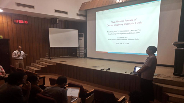 本次會(huì)議由29個(gè)報(bào)告、15次會(huì)議組成,其中1個(gè)主旨報(bào)告、7個(gè)大報(bào)告、13個(gè)邀請(qǐng)報(bào)告和8個(gè)交流報(bào)告。王念良教授應(yīng)邀作了主題為《某些虛二次域上的類數(shù)公式》的報(bào)告,并主持了會(huì)議第二天的晚場(chǎng)報(bào)告及學(xué)術(shù)交流活動(dòng)。