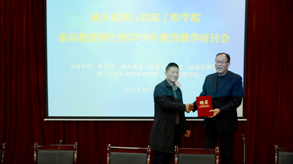 10月31日,城鄉(xiāng)規(guī)劃與建筑工程學(xué)院兼職教授聘任暨2018年教育教學(xué)研討會順利舉行,西安建筑科技大學(xué)白國良教授在會上受聘為我校兼職教授。校長范新會出席聘任儀式并為白教授頒發(fā)聘書。校黨委委員、教務(wù)處處長李超,校黨委委員、城鄉(xiāng)規(guī)劃與建筑工程學(xué)院院長楊存典及人事處相關(guān)負(fù)責(zé)人參加了聘任儀式。聘任儀式由李超主持。