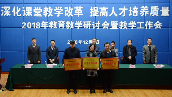 范新會在會上作了2018年教學(xué)工作報告,全面總結(jié)回顧了我校2018年教育教學(xué)工作,闡述了對加強本科教育教學(xué)工作的思考,提出了對2019年教學(xué)工作的設(shè)想。他要求,一要瞄準服務(wù)域,扎根商洛大地辦大學(xué),強化“一流學(xué)院”建設(shè);二要切實推進校院兩級管理,充分調(diào)動教師投入教學(xué)科研的積極性;三要抓好關(guān)鍵點,全力培養(yǎng)德智體美勞全面發(fā)展的應(yīng)用型人才;四要以審核評估為契機全面提升辦學(xué)競爭力。希望全校教職員工認真貫徹落實全國教育大會和新時代高等院校本科教育工作大會精神,堅持立德樹人根本任務(wù),不斷提高教育教學(xué)質(zhì)量,培養(yǎng)德智體美勞全面發(fā)展的社會主義建設(shè)者和接班人,為加快建設(shè)一流應(yīng)用型本科院校做出新的更大貢獻!