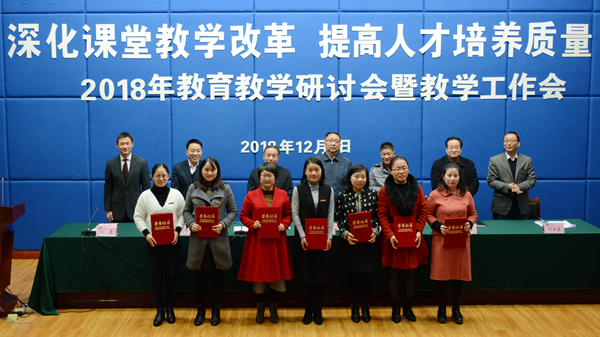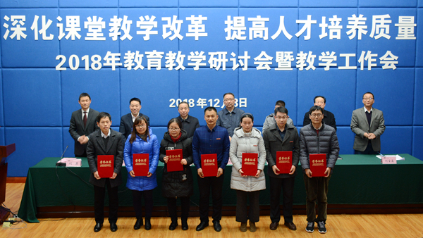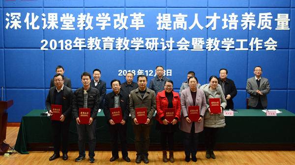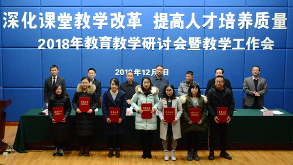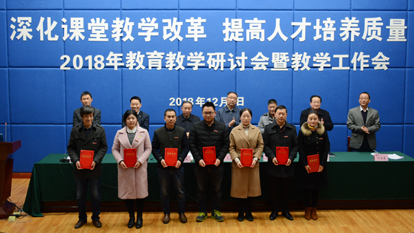 大會對我校2018年度優(yōu)秀教案及優(yōu)秀電子課件、實習優(yōu)秀指導(dǎo)教師、2018屆校級優(yōu)秀畢業(yè)論文指導(dǎo)教師、第四屆“互聯(lián)網(wǎng)+”大學(xué)生創(chuàng)新創(chuàng)業(yè)大賽校賽獲獎教師、2018年度青年教師教學(xué)技能競賽獲獎教師、首屆課堂教學(xué)創(chuàng)新大賽獲獎教師、2018年教育教學(xué)研討會優(yōu)秀論文及優(yōu)秀組織單位進行了表彰,劉寶盈宣讀了表彰決定。
