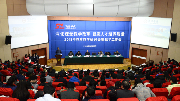 12月8日,我校召開2018年教育教學(xué)研討會暨教學(xué)工作會。黨委書記龍治剛、校長范新會、紀委書記王思懷、副校長魏書堂、黨委副書記彭虎軍,副校長劉寶盈、劉勇出席大會。大會以“深化課堂教學(xué)改革,提高人才培養(yǎng)質(zhì)量”為主題,邀請西安交通大學(xué)陸根書教授作了精彩報告,相關(guān)職能部門負責人及優(yōu)秀教師代表在大會上作了專題報告和交流。大會還對2018年度教育教學(xué)工作中涌現(xiàn)出的先進集體和個人進行了表彰。全校科級以上干部和專任教師共400余人參加大會。大會由劉勇主持。