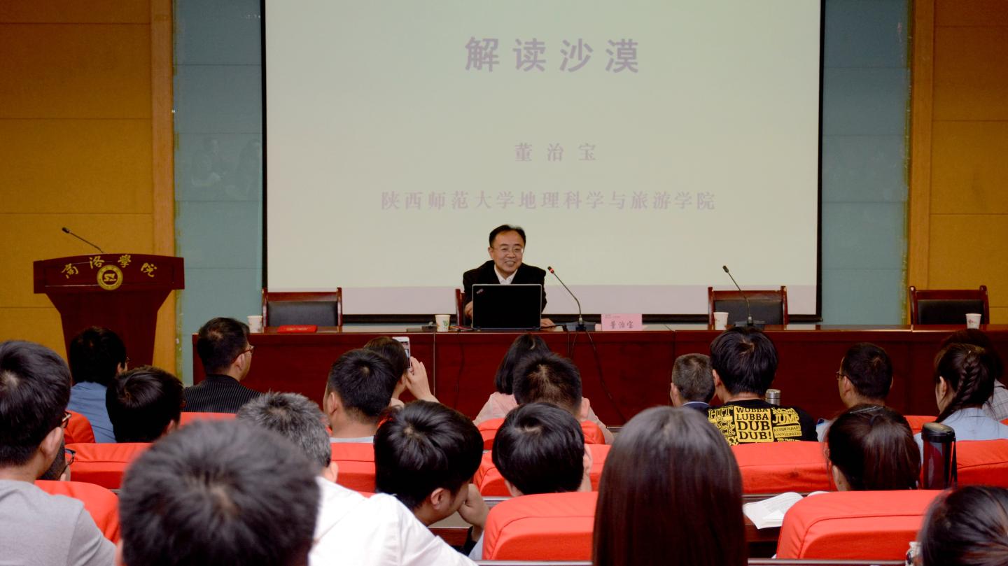 受聘儀式后,董教授以“解讀沙漠”為題作了學術報告。報告中,他從沙漠兩字蘊含的文化、沙漠的形成、沙漠中水的作用、沙產業(yè)等方面,對沙漠進行了多維度的深入解讀。報告幽默風趣、內容新穎,獲得在場師生陣陣掌聲。董教授還與師生親切互動,詳細解答了師生提出的學術問題。