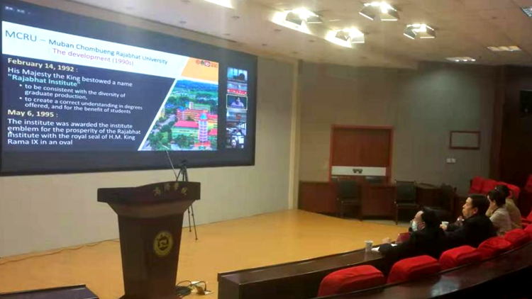 為助力我校及毗鄰地區(qū)學(xué)子在境外知名大學(xué)繼續(xù)提升學(xué)歷水平的迫切需求,進(jìn)一步擴(kuò)大繼續(xù)教育學(xué)院與國際知名大學(xué)合作的深度。3月29日,我校與泰國國立莊棚皇家大學(xué)召開視頻會議,就聯(lián)合培養(yǎng)碩士等合作項目進(jìn)行了交流。國際合作與交流處處長張建芳、繼續(xù)教育學(xué)院院長樊景博及相關(guān)工作人員參加了會議。