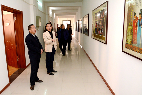 王思懷一行聽(tīng)取了劇團(tuán)團(tuán)長(zhǎng)李小斌的工作情況介紹,參觀了戲曲學(xué)院的工作環(huán)境。