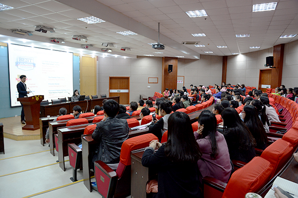 宣講會上,John Lee介紹了克萊蒙特大學(xué)的地理位置、環(huán)境、專業(yè)設(shè)置、招生需求以及就業(yè)前景。他表示,克萊蒙特大學(xué)接收研究生入學(xué)申請,研究生最低入學(xué)要求雅思6.0分、托福75分,即可申請直錄。克萊蒙特大學(xué)每年分春、夏、秋3季招生,春季招生為1月份,夏季招生為5月份,秋季招生為9月份。我校百余名出國留學(xué)意向的學(xué)生聽取了報告。