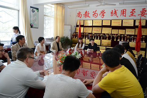 4月28日上午,陜西康惠制藥股份有限公司人力資源部部長李華、鎮(zhèn)安縣回龍鎮(zhèn)黨委副書記劉靖來我??疾旖涣?,洽談校企、校地合作事宜。黨委書記、校長劉建林,黨委副書記、副校長范新會接待了李華一行。