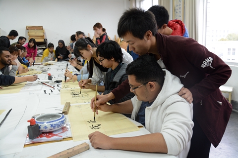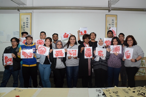 馬來西亞吉隆坡建設(shè)大學(xué)師生還參加了我??萍嘉幕囆g(shù)節(jié)開幕式,共同觀看航模表演,并聽取了我校創(chuàng)建一流應(yīng)用型本科院校系列學(xué)術(shù)報(bào)告。交流團(tuán)學(xué)生還在我校教師的指導(dǎo)下學(xué)習(xí)剪紙和中國書法,表現(xiàn)出了濃厚的興趣,并通過學(xué)習(xí),完成了自己的作品,寫出了“我愛中國”、“我愛商洛學(xué)院”等書法作品。