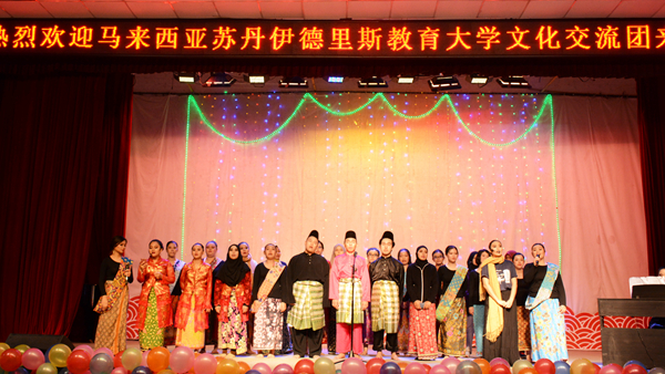 14日下午,我校和馬來西亞蘇丹伊德里斯教育大學(xué)學(xué)生聯(lián)袂演出了一臺(tái)精彩的文藝節(jié)目。其中我校學(xué)生表演的具有中華民族特色的漢服舞蹈《禮儀之邦》《青花瓷》、武術(shù)表演《武行我素》等節(jié)目獲得了來訪師生的贊賞。蘇丹伊德里斯教育大學(xué)師生也帶來了馬來西亞傳統(tǒng)舞蹈《sumazau》《joget》和歌曲大合唱,精彩的表演獲得了現(xiàn)場陣陣掌聲。