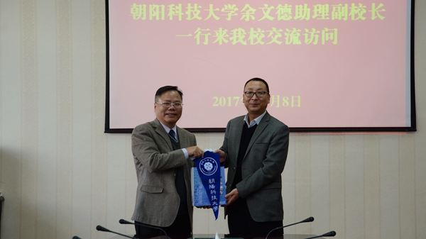 12月8日,臺(tái)灣朝陽(yáng)科技大學(xué)助理副校長(zhǎng)余文德一行來(lái)我校訪問(wèn)交流,副校長(zhǎng)劉寶盈出席座談會(huì)。