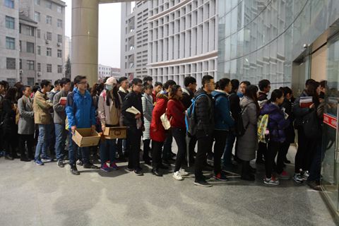 早上7點,圖書館外已經排起了長隊。