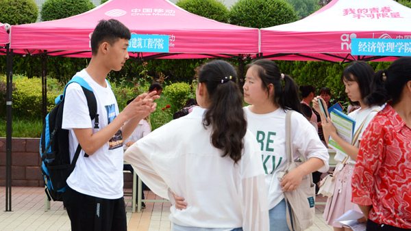 范新會(huì)仔細(xì)詢問了招生咨詢情況,并囑咐工作人員和學(xué)生志愿者做好服務(wù)工作。我校國際合作與交流處及各二級(jí)學(xué)院教師在咨詢會(huì)現(xiàn)場,耐心解答家長和考生們的詢問,對(duì)我校2019年招生政策、招生計(jì)劃、專業(yè)特色、考研就業(yè)和學(xué)生對(duì)外交流等情況進(jìn)行了詳細(xì)介紹。