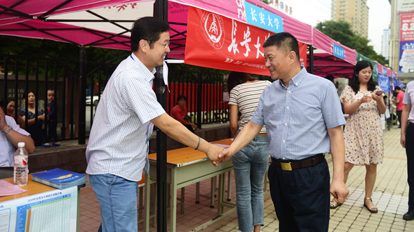 6月26日,我校舉辦了2019年校園開放日暨陜西高校招生咨詢會(huì)。我校與浙江大學(xué)、西安交通大學(xué)、西北工業(yè)大學(xué)、西北農(nóng)林科技大學(xué)、西北大學(xué)、長安大學(xué)、西安郵電大學(xué)、西交利物浦大學(xué)等30余所省內(nèi)外高校現(xiàn)場為廣大高考考生及家長提供招考咨詢服務(wù)。校長范新會(huì)到現(xiàn)場看望慰問各校工作人員并與考生及家長進(jìn)行了親切交談。