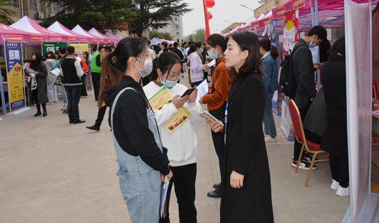 為更好地拓寬畢業(yè)生就業(yè)渠道,確保2021屆畢業(yè)生充分就業(yè)、穩(wěn)定就業(yè),4月10日,由陜西省教育廳主辦,商洛市人力資源和社會(huì)保障局、商洛市人才交流服務(wù)中心協(xié)辦,我校承辦的2021屆畢業(yè)生春季綜合類校園招聘會(huì)順利舉辦。校黨委副書記彭虎軍、商洛市人力資源和社會(huì)保障局及人才交流服務(wù)中心相關(guān)負(fù)責(zé)人深入招聘會(huì)現(xiàn)場(chǎng)指導(dǎo)工作。我校相關(guān)職能部門負(fù)責(zé)人,各二級(jí)學(xué)院黨總支書記、學(xué)工辦主任及畢業(yè)班輔導(dǎo)員全程參與并為畢業(yè)生提供就業(yè)指導(dǎo)服務(wù)。