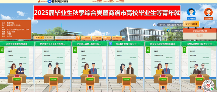 10月16日,由省教育廳指導(dǎo)、省就業(yè)留學(xué)中心支持,我校和商洛市人社局聯(lián)合主辦,我校就業(yè)中心和商洛市人才中心承辦的2025屆畢業(yè)生秋季綜合類暨商洛市高校畢業(yè)生等青年就業(yè)服務(wù)攻堅行動專場網(wǎng)絡(luò)視頻招聘會依托貓頭英云人才市場順利舉辦。