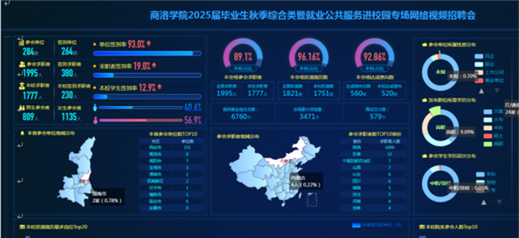 為做好我校2025屆畢業(yè)生就業(yè)工作,充分搭建用人單位和畢業(yè)生交流平臺,確保我校畢業(yè)生更加充分、更高質(zhì)量就業(yè),11月20日,由省教育廳指導、省就業(yè)留學中心支持,我校和商洛市人社局聯(lián)合主辦,我校就業(yè)中心和商洛市人才中心承辦的2025屆畢業(yè)生秋季綜合類暨就業(yè)公共服務進校園專場網(wǎng)絡視頻招聘會依托貓頭英云人才市場順利舉辦。