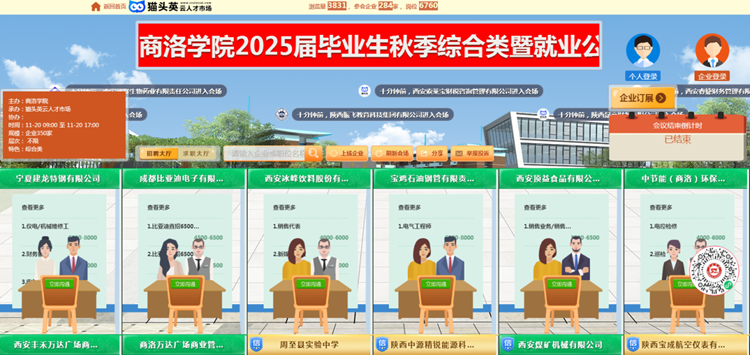 為充分做好我校2025屆畢業(yè)生就業(yè)工作,充分搭建用人單位和畢業(yè)生交流平臺(tái),確保我校畢業(yè)生更加充分、更高質(zhì)量就業(yè),12月25日,由省教育廳指導(dǎo)、省就業(yè)留學(xué)中心支持,我校和商洛市人社局聯(lián)合主辦,我校就業(yè)中心和商洛市人才中心承辦的2025屆畢業(yè)生冬季綜合類(lèi)暨人力資源市場(chǎng)高校畢業(yè)生就業(yè)服務(wù)專(zhuān)項(xiàng)行動(dòng)網(wǎng)絡(luò)視頻招聘會(huì)依托貓頭英云人才市場(chǎng)順利舉辦。