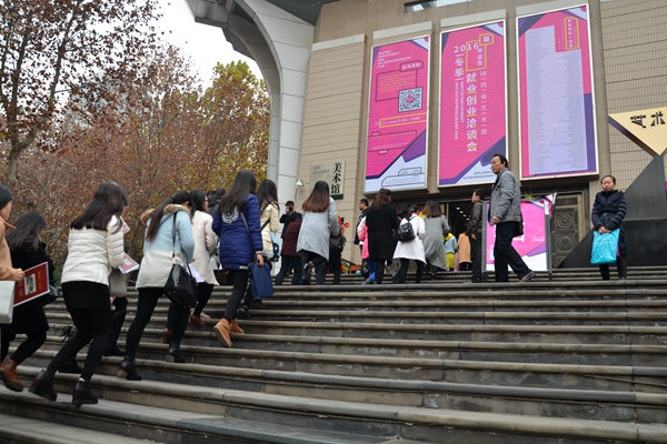 11月28日,由陜西省教育廳主辦,西安美術(shù)學(xué)院承辦,我校及9所高校聯(lián)辦的陜西高校藝術(shù)類畢業(yè)生就業(yè)創(chuàng)業(yè)洽談會在西安美術(shù)學(xué)院美術(shù)館成功舉辦。省內(nèi)外180多家用人單位到會招聘畢業(yè)生。我校藝術(shù)學(xué)院美術(shù)學(xué)、音樂學(xué)、藝術(shù)設(shè)計、音樂教育4個專業(yè)部分畢業(yè)生參加了洽談會。