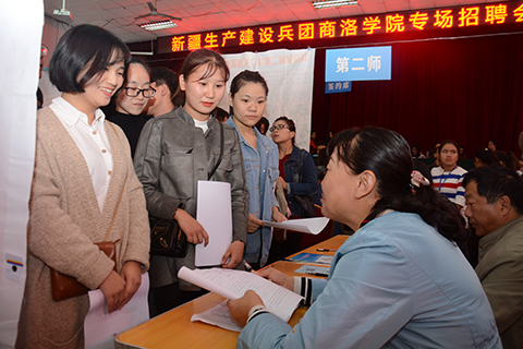 10月17日,由新疆生產(chǎn)建設(shè)兵團13個師30多個團場及企業(yè)組成人才招聘團來我校舉辦專場招聘會。我校畢業(yè)生、商洛職業(yè)技術(shù)學院畢業(yè)生參加專場招聘會,部分學生現(xiàn)場與用人單位簽約或達成就業(yè)意向。
