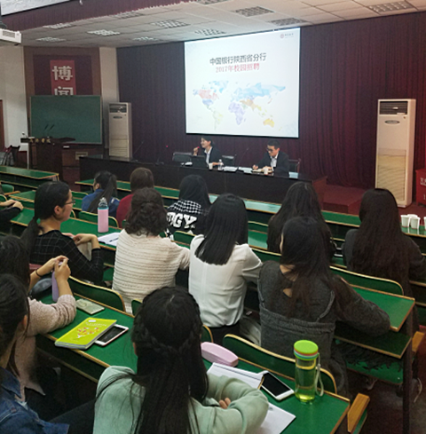 中國銀行商洛分行人力資源部負(fù)責(zé)人從企業(yè)概況、員工職業(yè)生涯規(guī)劃和2017年校園招聘安排等方面作了詳細(xì)講解,鼓勵(lì)有意向畢業(yè)生積極參加招聘,將來在工作崗位發(fā)揮專業(yè)特長,實(shí)現(xiàn)人生價(jià)值。