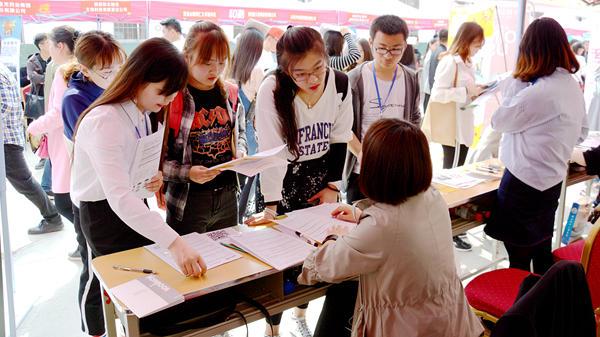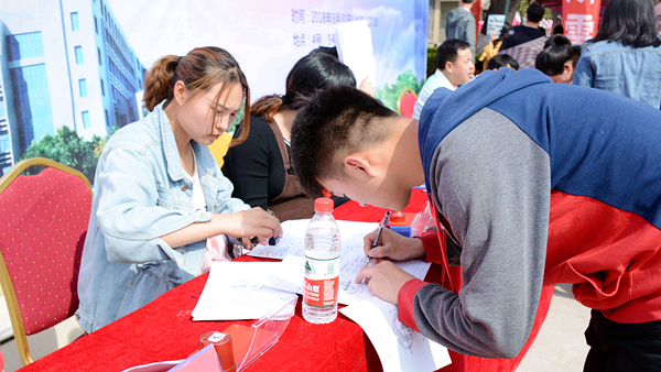 招聘會上,來自江蘇、新疆、北京、上海、山西等地的161家省內(nèi)外企事業(yè)單位、學(xué)校及培訓(xùn)機構(gòu)進行了現(xiàn)場洽談?wù)衅?。各用人單位提供的就業(yè)崗位涉及基礎(chǔ)教育、應(yīng)用化工、生物醫(yī)藥、工程管理、電子技術(shù)、財務(wù)會計等諸多行業(yè)領(lǐng)域,共計8800余個招聘崗位,基本覆蓋我校畢業(yè)生所學(xué)專業(yè)。在前期的大力宣傳和有效組織下,我校應(yīng)往屆畢業(yè)生及來自省內(nèi)7所高校的畢業(yè)生共計3000多人參加了招聘會。