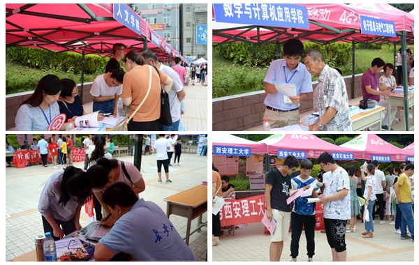 6月25日,我校舉辦2018年“校園開(kāi)放日暨高考招生咨詢會(huì)”。我校與浙江大學(xué)、西安交通大學(xué)、西北工業(yè)大學(xué)、西北農(nóng)林科技大學(xué)、西安電子科技大學(xué)、陜西師范大學(xué)等30余所省內(nèi)外高?,F(xiàn)場(chǎng)為廣大高考考生及家長(zhǎng)提供了全方位的招考咨詢服務(wù)。活動(dòng)吸引了大批學(xué)生及家長(zhǎng)前來(lái)咨詢。副校長(zhǎng)劉勇檢查指導(dǎo)現(xiàn)場(chǎng)工作,黨委委員、教務(wù)處處長(zhǎng)李超,黨委委員、建工學(xué)院院長(zhǎng)楊存典也來(lái)到活動(dòng)現(xiàn)場(chǎng)進(jìn)行咨詢解答。