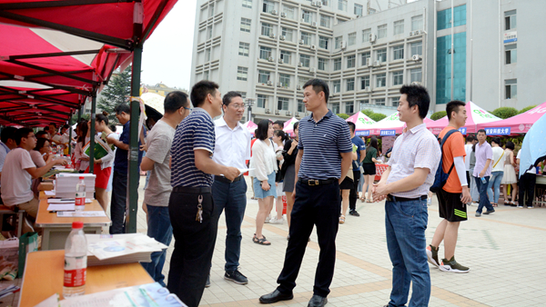 劉勇和考生及家長(zhǎng)進(jìn)行了親切交談,看望慰問(wèn)了參加咨詢會(huì)的各高校工作人員,仔細(xì)詢問(wèn)了招生咨詢情況,并囑咐教務(wù)處工作人員和學(xué)生志愿者做好服務(wù)工作。我校國(guó)際合作交流處及各二級(jí)學(xué)院教師現(xiàn)場(chǎng)耐心解答了家長(zhǎng)和考生們關(guān)心的我校2018年招生政策、招生計(jì)劃、專業(yè)特色、考研就業(yè)和學(xué)生國(guó)際交流等情況。