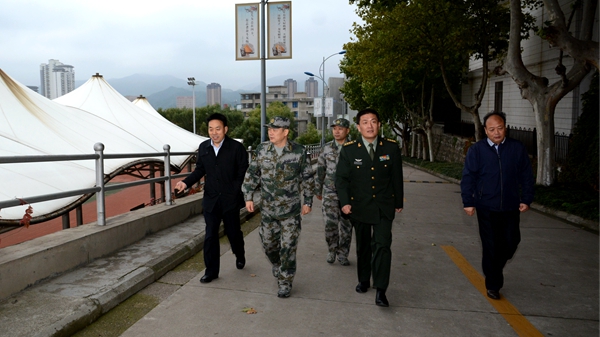 座談會(huì)結(jié)束后,谷星林一行在彭虎軍等人員的陪同下,實(shí)地考察了學(xué)校校園環(huán)境和國(guó)防戶外訓(xùn)練場(chǎng)地。