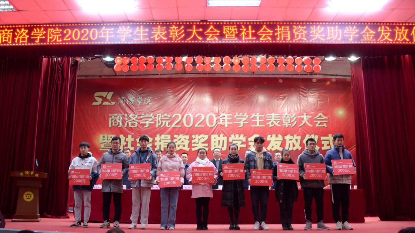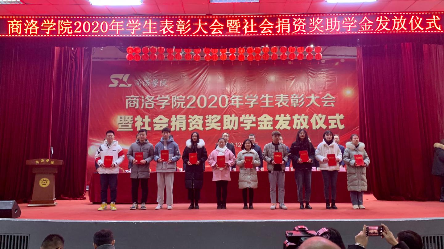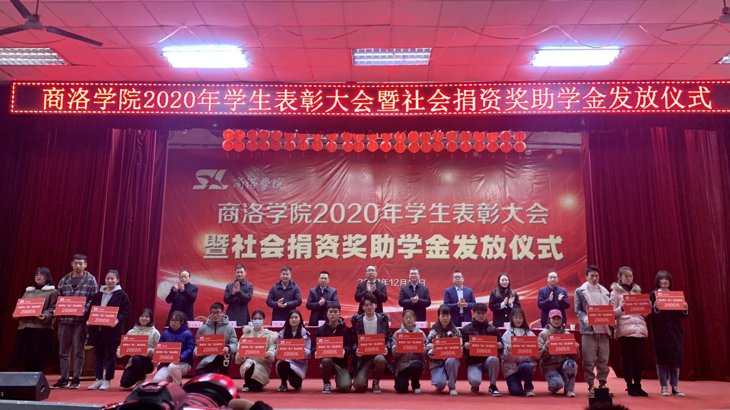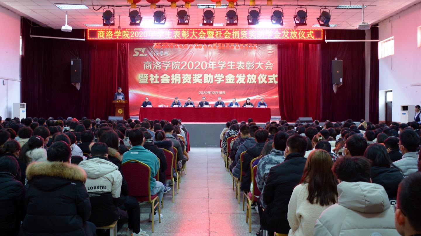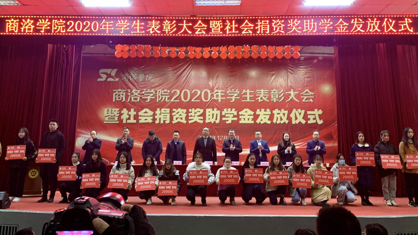 12月16日,我校2020年學(xué)生表彰大會(huì)暨社會(huì)捐資獎(jiǎng)助學(xué)金發(fā)放儀式在大學(xué)生活動(dòng)中心隆重舉行。校黨委書記龍治剛、黨委副書記劉勇,國(guó)網(wǎng)商洛供電公司總經(jīng)理李強(qiáng),中國(guó)聯(lián)通商洛分公司副總經(jīng)理毛繁,中國(guó)電信商洛分公司副總經(jīng)理王軍建,中國(guó)移動(dòng)商洛分公司黨委委員、副總經(jīng)理許鵬,貴州茅臺(tái)陜西省區(qū)域負(fù)責(zé)人李方,校黨委委員、黨委辦公室·院長(zhǎng)辦公室主任、校友總會(huì)辦公室負(fù)責(zé)人張向東等出席大會(huì)。大會(huì)由學(xué)生處處長(zhǎng)石啟英主持。