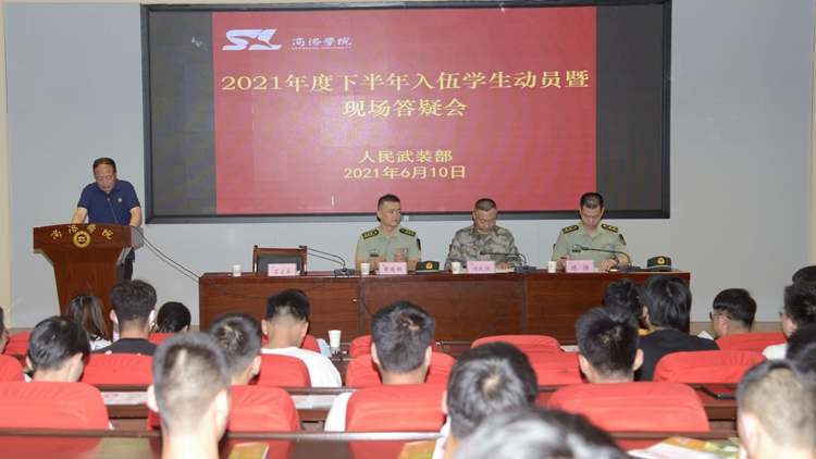 6月10日,我校舉辦2021年度下半年入伍學(xué)生動(dòng)員暨現(xiàn)場(chǎng)答疑會(huì),商洛軍分區(qū)動(dòng)員處處長(zhǎng)周武強(qiáng)、商州區(qū)武裝部部長(zhǎng)曹建明、商州區(qū)武裝部副部長(zhǎng)陳強(qiáng)中校出席會(huì)議。我校各二級(jí)學(xué)院學(xué)工辦主任、報(bào)名入伍學(xué)生160余人參加會(huì)議。會(huì)議由學(xué)生處處長(zhǎng)石啟英主持。