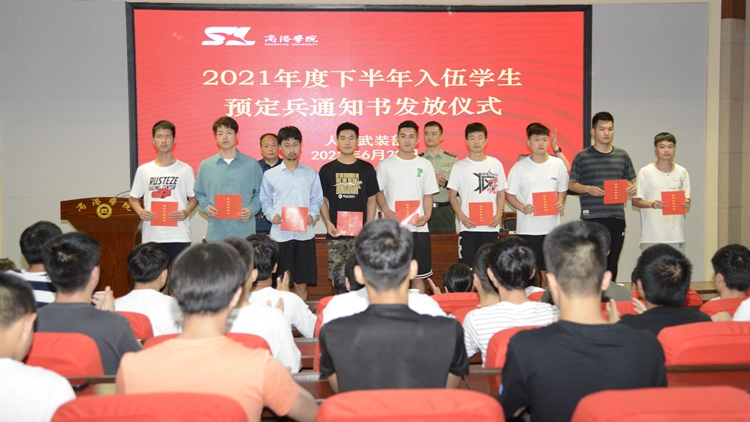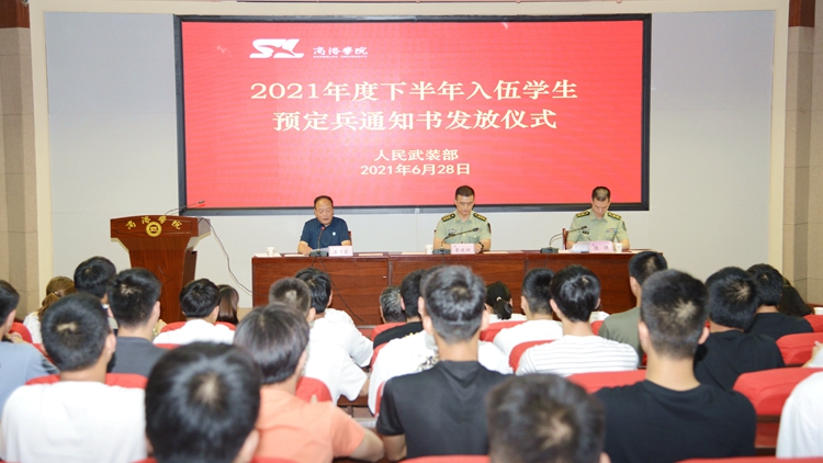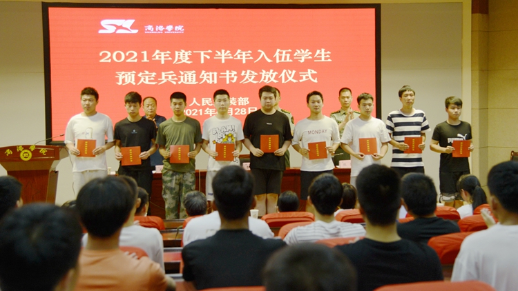 6月28日,我校舉辦了2021年度下半年入伍學(xué)生預(yù)定兵通知書發(fā)放儀式,商州區(qū)武裝部部長曹建明上校、副部長陳強中校出席會議。我校學(xué)生處處長石啟英、各二級學(xué)院學(xué)工辦主任及51名預(yù)定新兵參加了會議。會議由石啟英主持。