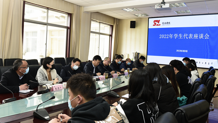 3月3日下午,我校召開學(xué)生代表座談會(huì)。黨委副書記彭虎軍、副校長(zhǎng)郭瑾與20名學(xué)生代表進(jìn)行面對(duì)面座談,聽取廣大在校學(xué)生對(duì)學(xué)校工作的意見建議。學(xué)工部、保衛(wèi)部、團(tuán)委、教務(wù)處、后勤保障處、圖書館等部門負(fù)責(zé)人參加座談。