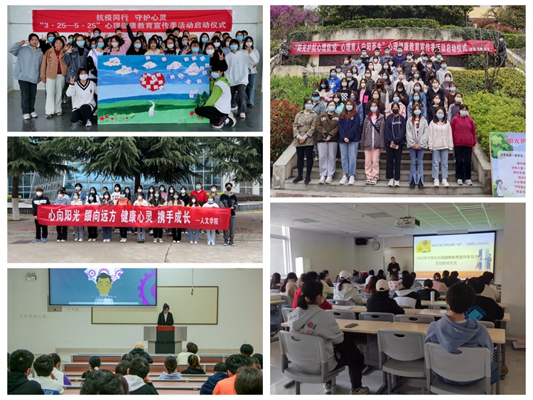 各二級學院結合院部實際,把握主題,精心策劃并陸續(xù)舉行了各自院部的心理健康教育宣傳季啟動儀式。其中,馬克思主義學院組織了40名學生代表在操場開展了以“抗疫同行守護心靈”為主題的團體輔導活動,引導學生在體驗活動中發(fā)現(xiàn)自己的閃光點、以更加積極健康的心態(tài)迎接未來的挑戰(zhàn);人文學院開展“3·25大學生心理健康日”交流會,現(xiàn)場準備了粉色問題箱、綠色回答箱、藍色宣泄箱、黃色祝福箱,讓同學們對自己和身邊人坦誠,增進自我了解,釋放心情,驅散煩惱;數(shù)計學院組織學生觀看心理育人微視頻,并圍繞“如何應對壓力”的話題讓學生展開討論,旨在讓學生尋找到適合自己應對壓力的方式,及時為自己解壓,保持良好的心理狀態(tài)。建工學院組織學生觀看了“面對疫情,我們如何進行心理調適?”的心理健康講座視頻,讓學生覺察自己因疫情帶來的不良情緒及其調適方法;經管學院開展了“愛心理助力團”心理委員專題培訓,了解學生在校園加強疫情管控期間的心理狀況,引導學生多關注心理健康方面知識,保持積極健康心態(tài);藝術學院召集全院學生干部,并由黨總支書記黃新春為學生干部們講述心理危機的識別與干預的基本要領,進一步夯實了學院危機干預四級網絡機制;電信學院、化材學院、生物學院和健康學院等開展了以“陽光護航”為主題的啟動大會,會上安排部署心理季活動,介紹了心理健康教育的意義及重要性,組織學生進行“325善愛我”的宣誓并在橫幅上簽字,旨在號召關注心理健康,不負青春韶華。
