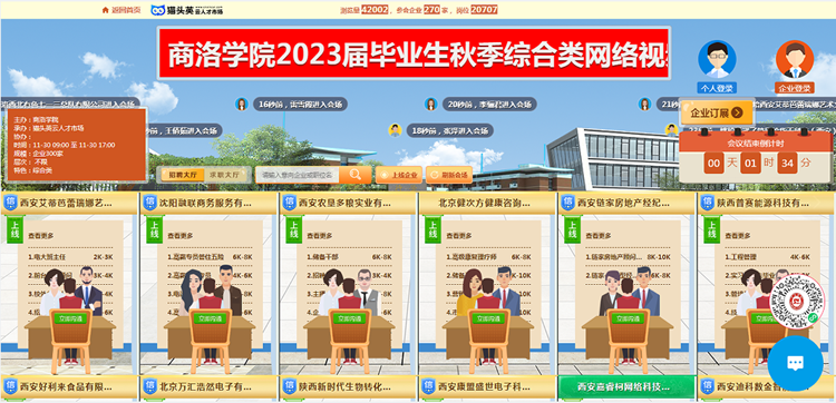 為確保本次網(wǎng)絡(luò)視頻雙選會的順利開展,學(xué)生處就業(yè)指導(dǎo)服務(wù)中心聯(lián)合貓頭英招聘平臺,積極開展會前宣傳,同時充分聯(lián)系、積極動員學(xué)?!霸L企拓崗促就業(yè)”專項行動落實的優(yōu)質(zhì)就業(yè)創(chuàng)業(yè)基地入網(wǎng)參會,確保用人單位資質(zhì)過硬、提供崗位優(yōu)質(zhì)有效。學(xué)生處先后通過學(xué)校官網(wǎng)、官微,就業(yè)指導(dǎo)服務(wù)中心官微積極向畢業(yè)生宣傳招聘會參會方式。招聘會開始后,各二級學(xué)院畢業(yè)班輔導(dǎo)員通過一對一聯(lián)系的方式,為在校和居家學(xué)生提供參會求職指導(dǎo)與服務(wù)。