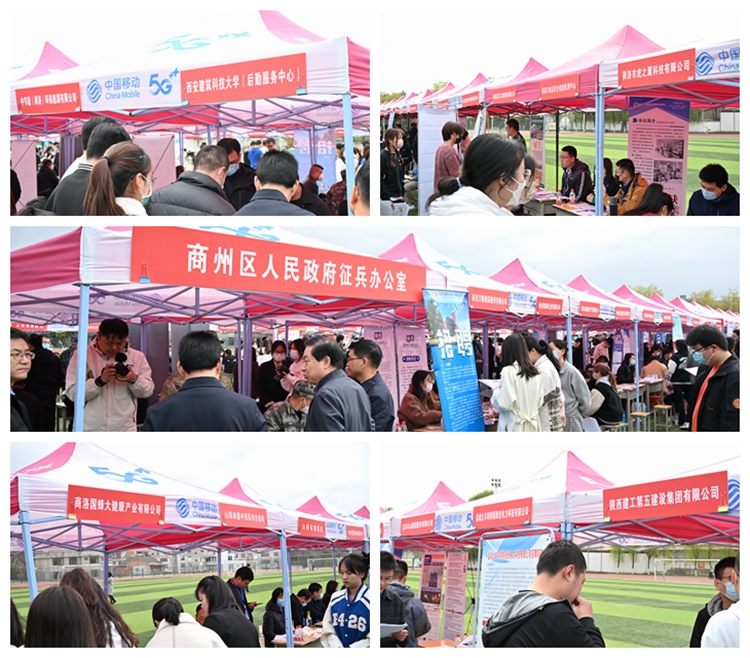 為進一步做好我校2023屆畢業(yè)生就業(yè)工作,充分搭建用人單位和畢業(yè)生交流平臺,3月25日,由陜西省教育廳主辦,商洛市人社局、西安市人社局、商洛市人才中心、西安市人才中心協(xié)辦,我校承辦的2023屆畢業(yè)生春季綜合類暨“西商融合發(fā)展”校園招聘會在我校北新街校區(qū)體育場順利舉辦。校黨委副書記彭虎軍,商洛市人社局四級調研員方憲遵,商洛市人才中心主任舒建宏、副主任董毅現(xiàn)場指導招聘工作。學生處負責人,各二級學院黨委、黨總支書記及全體畢業(yè)班輔導員參加招聘會并為畢業(yè)生提供就業(yè)指導服務。