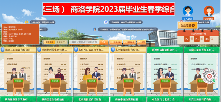 為切實(shí)做好我校2023屆畢業(yè)生就業(yè)工作,促進(jìn)畢業(yè)生更加充分、更高質(zhì)量就業(yè),4月19日,由省教育廳主辦,商洛市人社局、商洛市人才中心協(xié)辦,我校依托貓頭英云人才市場(chǎng)成功舉辦了2023屆畢業(yè)生春季綜合類網(wǎng)絡(luò)視頻招聘會(huì)(第二場(chǎng))。