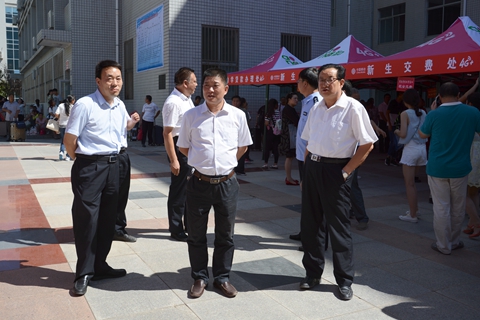 我校2016級(jí)新生將于9月3日、4日入學(xué)報(bào)到。9月2日下午,校黨委副書記、副校長范新會(huì),副校長魏書堂,黨委副書記彭虎軍深入迎新接待點(diǎn),檢查指導(dǎo)迎新工作。