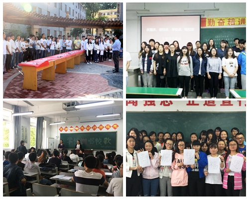 各學(xué)院紛紛圍繞“慶國慶 迎校慶 學(xué)校訓(xùn) 唱校歌”組織開展了內(nèi)容豐富、形式多樣的主題團(tuán)日活動,慶祝母校40華誕,教育廣大學(xué)生了解學(xué)校、熱愛學(xué)校,以主人翁姿態(tài)積極參與到校慶各項工作中。數(shù)計學(xué)院通過問答的形式組織同學(xué)們重溫了學(xué)校校訓(xùn)和精神,文傳學(xué)院通過向母校校慶獻(xiàn)禮、抒寫祝福、主題討論等方式增強(qiáng)了學(xué)生的歸屬感與自豪感,建工學(xué)院則通過校史知識問答、傳唱校歌的形式表達(dá)對母校40華誕的祝福,人文學(xué)院通過回憶校史、傳唱校歌、學(xué)習(xí)校訓(xùn)的方式激發(fā)學(xué)生的愛校情感,生物學(xué)院倡導(dǎo)同學(xué)們將理論知識與社會實(shí)踐相結(jié)合,樹立憂患意識,實(shí)現(xiàn)青春夢想,為學(xué)校增光添彩。