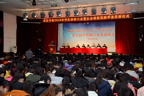 魏書堂宣讀了關于表彰2015-2016學年先進班集體、三好學生、十佳大學生及優(yōu)秀學生干部的決定。陜西省電力公司外聯(lián)部副主任李亞琳宣讀了2016年“國網(wǎng)商洛電力”助學金受助學生名單,商洛市郵政分公司扶貧辦公室主任劉吉堯宣讀了2016年商洛郵政“鴻雁愛心”助學金受助學生名單,中國聯(lián)通商洛分公司副總經理陳安民宣讀了2016年商洛聯(lián)通“沃校園”助學金受助學生名單,中國電信商洛分公司政企客戶部經理吳良哲宣讀了2016年商洛電信天翼助學金受助學生名單,陜西森弗天然制品有限公司總經理金淑霞宣讀了2016年森弗愛心獎助學金資助學生名單。