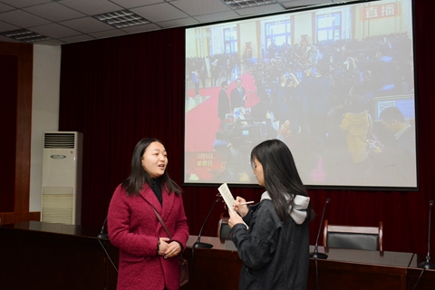 3月3日和3月5日,政協(xié)第十二屆全國(guó)委員會(huì)第五次會(huì)議、十二屆全國(guó)人大五次會(huì)議分別在北京人民大會(huì)堂開(kāi)幕。我校組織師生在報(bào)告廳集中收看了開(kāi)幕式實(shí)況直播,師生們分別通過(guò)手機(jī)、網(wǎng)絡(luò)、電視、廣播等媒體積極收看收聽(tīng),對(duì)兩會(huì)精神、熱點(diǎn)話題進(jìn)行了學(xué)習(xí)討論。