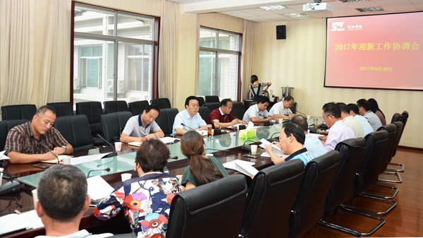 2017年我校面向28個?。ㄊ小⒆灾螀^(qū))錄取新生3302人,根據(jù)學校安排,新生將于9月4日至5日來校報到。為切實做好新生入學接待工作,8月28日下午,學校召開2017年迎新工作協(xié)調(diào)會。黨委副書記、2017年迎新工作領(lǐng)導(dǎo)小組組長彭虎軍出席會議并講話。迎新工作領(lǐng)導(dǎo)小組成員參加會議。