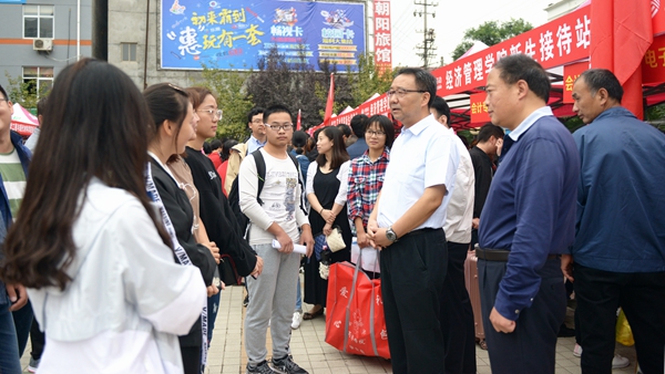 “你們辛苦了,感謝你們!”在奔忙的學(xué)生志愿服務(wù)點(diǎn)前,校領(lǐng)導(dǎo)為志愿者熱情投身迎新志愿服務(wù)工作點(diǎn)贊。在新生報(bào)到點(diǎn),校領(lǐng)導(dǎo)為家庭經(jīng)濟(jì)困難學(xué)生發(fā)放愛(ài)心禮包,與遠(yuǎn)道而來(lái)的新生及家長(zhǎng)親切交談,問(wèn)詢他們的報(bào)到情況,并向他們介紹商洛的歷史人文、自然風(fēng)光和我校的辦學(xué)特色。
