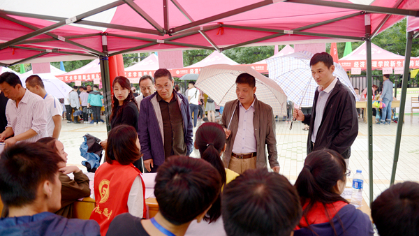 龍治剛、范新會(huì)、彭虎軍、劉勇分別深入交費(fèi)處、綠色通道、行李寄存處、臥具發(fā)放處、軍訓(xùn)服裝發(fā)放處、銀行卡與通信卡辦理處和各二級(jí)學(xué)院新生報(bào)到接待處等場(chǎng)點(diǎn),巡查迎新工作開(kāi)展情況,走訪慰問(wèn)工作人員和學(xué)生志愿者,與新生家長(zhǎng)交談。