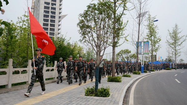 為確保此次拉練順利完成,學(xué)校做了周密的安排部署。保衛(wèi)處與地方交管部門協(xié)調(diào)配合,為行軍隊伍準(zhǔn)備了指揮車、醫(yī)務(wù)車和保障車,在十字路口等處部署交警協(xié)助指揮交通;學(xué)生處、各二級學(xué)院黨總支負責(zé)人和新生輔導(dǎo)員全程跟隨行軍隊伍,重要路口警戒,重點關(guān)注掉隊人員,將女生放在排頭,輔導(dǎo)員走在隊伍右后方,確保拉練活動圓滿完成。歷經(jīng)三小時后,所有新生順利返回北新街校區(qū)。在行軍過程中,新生們斗志昂揚、隊列齊整、秩序井然,充分展示了軍訓(xùn)成果和我校學(xué)子積極向上、不怕吃苦的精神風(fēng)貌,引來了過往市民的注目和贊揚。