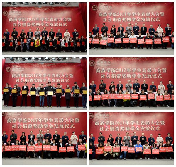 大會(huì)對(duì)2016-2017學(xué)年先進(jìn)班集體、十佳大學(xué)生、三好學(xué)生、優(yōu)秀學(xué)生干部、文明大學(xué)生、2017年暑期“三下鄉(xiāng)”社會(huì)實(shí)踐暨扶貧攻堅(jiān)專項(xiàng)活動(dòng)優(yōu)秀團(tuán)隊(duì)及先進(jìn)個(gè)人、優(yōu)秀團(tuán)隊(duì),商洛學(xué)院第八屆“挑戰(zhàn)杯”課外學(xué)術(shù)活動(dòng)作品競(jìng)賽及大學(xué)生創(chuàng)業(yè)計(jì)劃大賽優(yōu)秀團(tuán)隊(duì)和先進(jìn)個(gè)人代表進(jìn)行了表彰,向200名受獎(jiǎng)受助學(xué)生發(fā)放了社會(huì)捐資獎(jiǎng)助學(xué)金。