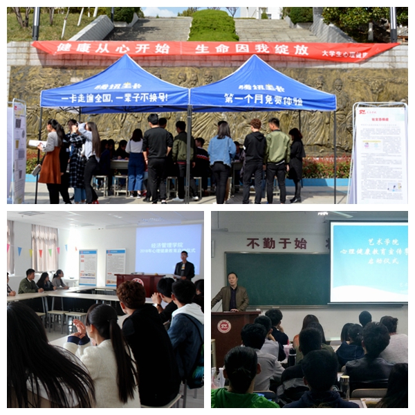各二級(jí)學(xué)院也積極響應(yīng),陸續(xù)舉行了心理健康教育系列活動(dòng)啟動(dòng)儀式。其中,數(shù)計(jì)學(xué)院開展了以“放飛心理之翼,塑造理想自我”為主題的現(xiàn)場簽名活動(dòng);經(jīng)管學(xué)院開設(shè)了“愛心理”讀書會(huì),安排了“愛心理”助力成長團(tuán),展播了《知心》系列微電影;藝術(shù)學(xué)院開展了情景劇表演以及動(dòng)漫展等相關(guān)活動(dòng)。此外,各學(xué)院和社團(tuán)還積極籌劃了團(tuán)體心理輔導(dǎo)、心理電影展播、心理美文朗誦大賽等心理健康教育活動(dòng)。