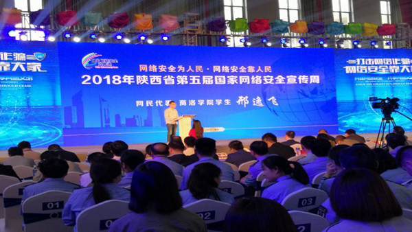 我校100余名師生參加開幕式,電信學院學生邢逸飛作為全省唯一的網民代表在開幕式上發(fā)言。邢逸飛說,自己是商洛學院的一名網絡評論員、學生記者,因為經常性參加學校組織的培訓交流活動,所以對網絡宣傳和輿論引導的重要性有著切身的認識。維護網絡安全,爭做中國好網民,大學生要發(fā)揮好“排頭兵”的作用。他在大會上代表大學生和廣大網民鄭重承諾:一要提高政治站位,積極參加學校和網信部門舉辦的形式多樣的網絡安全教育活動,帶頭在校園中宣傳網絡安全知識,讓“網絡安全為人民,網絡安全靠人民”的理念深入人心;二要堅守網絡理性,明辨慎思,不人云亦云亂跟風,杜絕形形色色的網絡誘惑,保持客觀理性地接收信息、傳播信息,要慎重地轉發(fā),客觀地進行評論,既不當傳謠者,也不做“網絡暴民”;三要遵守網絡法規(guī),做網絡安全法的宣傳者,做網絡安全法的執(zhí)行者,做網絡安全法的捍衛(wèi)者,做網絡安全法的建設者;四要用網而不沉溺于網絡,用青春傳播正能量,踐行社會主義核心價值觀,把自己鍛造成堪當民族復興大任的時代新人。