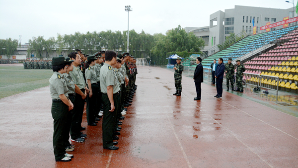 在軍訓(xùn)場(chǎng)地,連文生大校對(duì)承訓(xùn)教官和參訓(xùn)學(xué)生在連日陰雨中依然堅(jiān)持刻苦訓(xùn)練的堅(jiān)強(qiáng)意志和頑強(qiáng)作風(fēng)表示贊賞。他逐一視察各連方陣,看望慰問承訓(xùn)教官、參訓(xùn)師生,詳細(xì)了解了連隊(duì)編排、訓(xùn)練項(xiàng)目等各方面工作開展情況。他要求承訓(xùn)教官,一要嚴(yán)格施訓(xùn),認(rèn)真組訓(xùn),確保新生軍訓(xùn)效果;二要通過軍訓(xùn),增強(qiáng)學(xué)生體魄,磨煉學(xué)生的堅(jiān)強(qiáng)意志,鍛造學(xué)生的優(yōu)良品質(zhì);三要嚴(yán)格保證訓(xùn)練質(zhì)量,確保學(xué)生安全。他希望2018級(jí)學(xué)生通過軍訓(xùn),進(jìn)一步增強(qiáng)國(guó)防意識(shí)和愛國(guó)情操,培養(yǎng)艱苦奮斗、吃苦耐勞的作風(fēng),圓滿完成訓(xùn)練任務(wù),以飽滿的熱情和良好的精神面貌開啟大學(xué)生活。