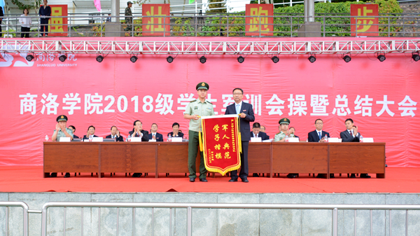 汗水書寫青春,磨練見證成長。9月20日,我校隆重舉行2018級(jí)學(xué)生軍訓(xùn)會(huì)操暨總結(jié)大會(huì),檢閱2018級(jí)學(xué)生軍訓(xùn)成果,并對(duì)軍訓(xùn)中表現(xiàn)突出的先進(jìn)集體與先進(jìn)個(gè)人進(jìn)行表彰。校領(lǐng)導(dǎo)龍治剛、范新會(huì)、魏書堂、劉寶盈、劉勇,中國人民武警部隊(duì)商洛支隊(duì)副參謀長、軍訓(xùn)團(tuán)團(tuán)長呂喆少校,中國人民武警部隊(duì)商洛支隊(duì)執(zhí)勤一大隊(duì)隊(duì)長郭偉少校出席大會(huì)。各二級(jí)學(xué)院黨政主要負(fù)責(zé)人、有關(guān)職能部門負(fù)責(zé)人、全體2018級(jí)學(xué)生及輔導(dǎo)員參加了大會(huì)。大會(huì)由黨委副書記彭虎軍主持。